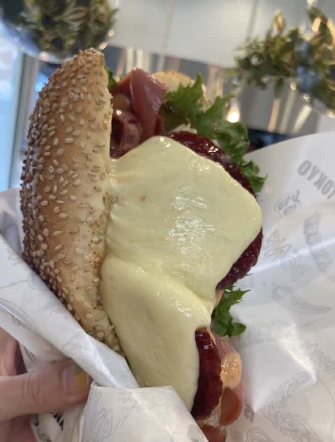 パンはふかふかで、大きなサラミにチーズがたっぷり乗っかって食べ応えあり。