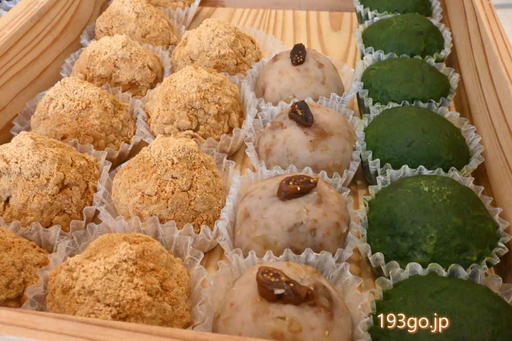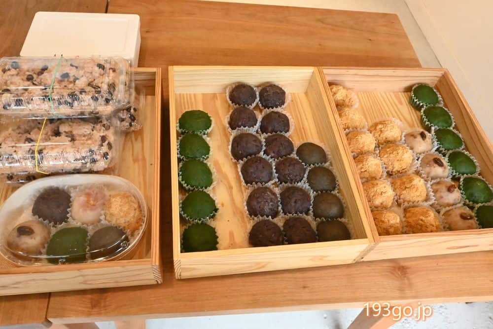 木箱に並ぶミニおはぎ 滋賀羽二重糯米や有機古代米、てんさい糖…こだわり素材の手作り