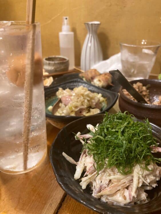 お通しは味噌キャベツ!お酒も日本酒、焼酎、泡盛、ビール、サワー、ワイン、果実酒…と、種類豊富。