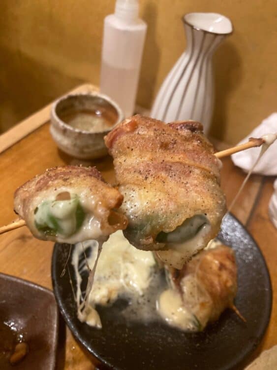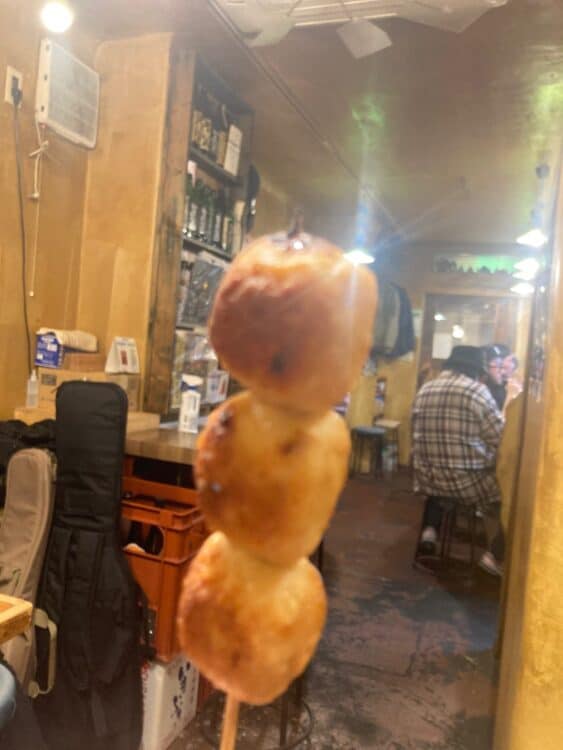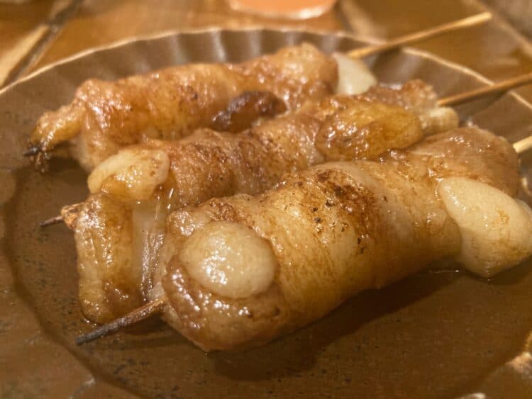 餅に豚バラを巻いたもちバラ、自家製生つくね、