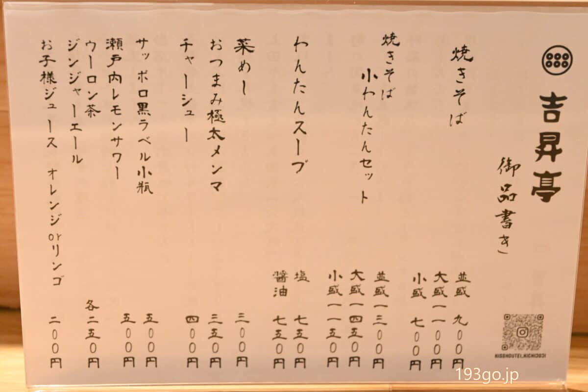 「吉昇亭」メニューは焼きそば、わんたん、セットも