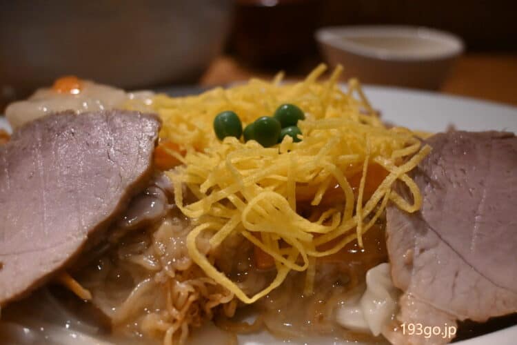 豚肉がバラ肉ではなく、冷やし中華に入っている様な薄切りのチャーシューなのも、なんだか新鮮!