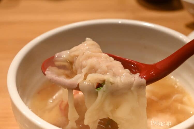 ツルっとした皮に餡もたっぷりの大ぶりワンタンが3~4個入り。