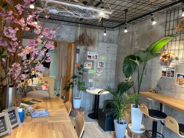 小さな店内に植物が飾られ、カウンター席がありイートイン&テイクアウトが可能。