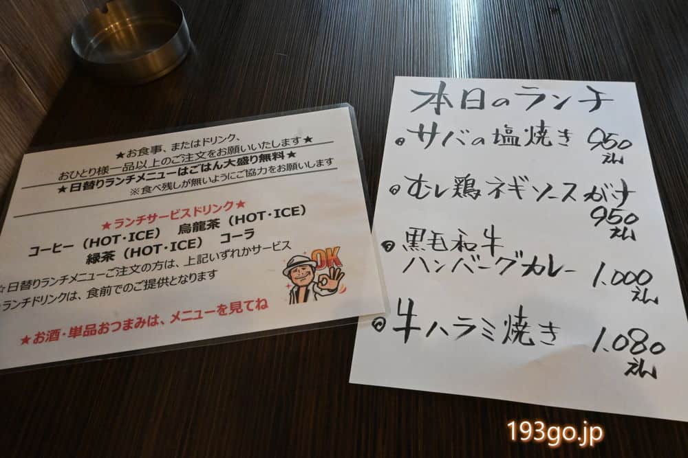 ランチメニュー ドリンク付き、ご飯大盛無料
