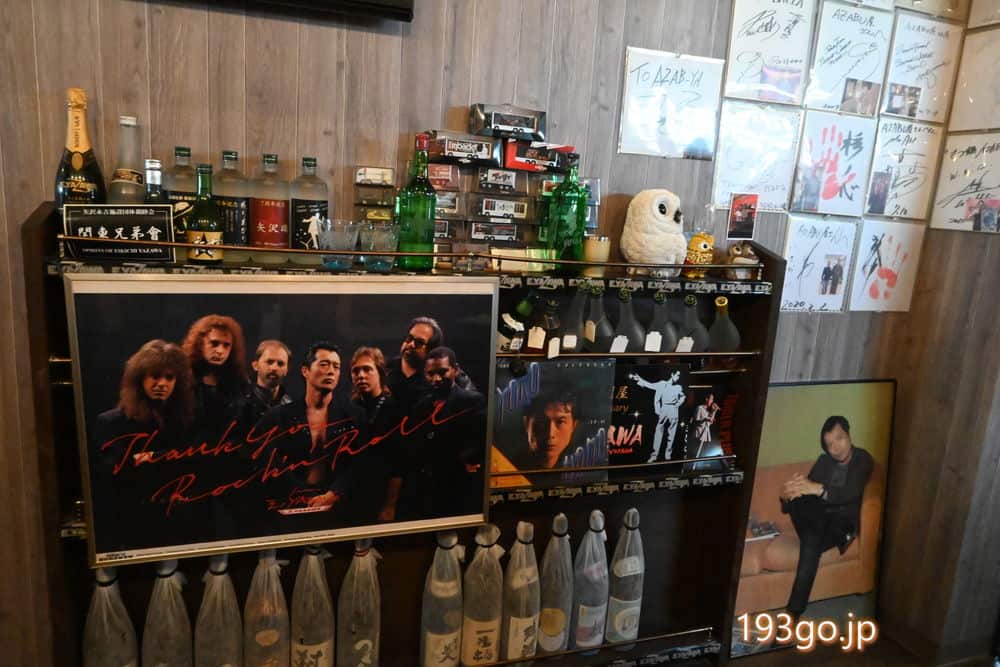 店主が迎えてくれた。矢沢永吉のポスターや旗、写真が所せましと。どうやら店主はコアな“えいちゃん”ファンらしい…。