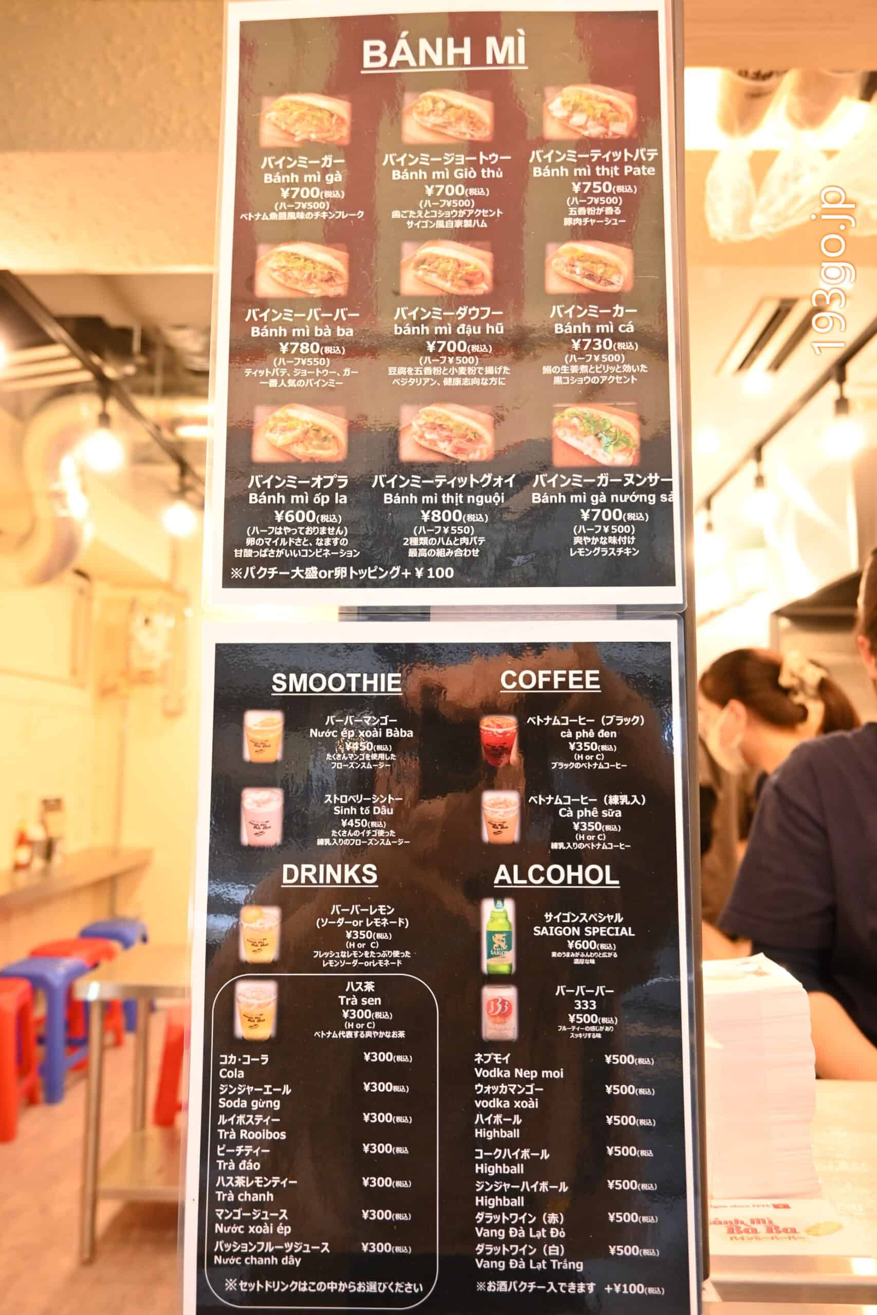 「バインミーバーバー吉祥寺店」のメニューと値段