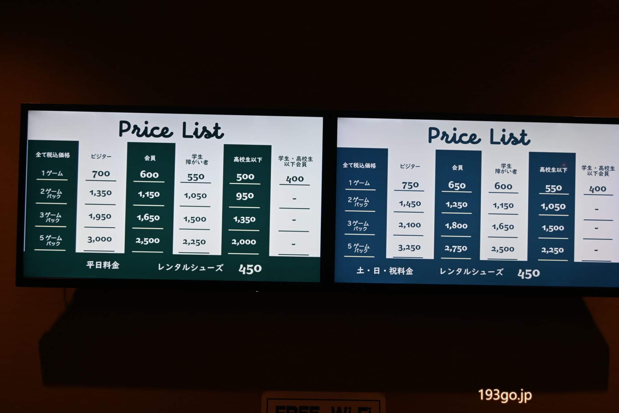 ボーリングは、ビジター料金で、1ゲーム700円~。(土日祝750円)