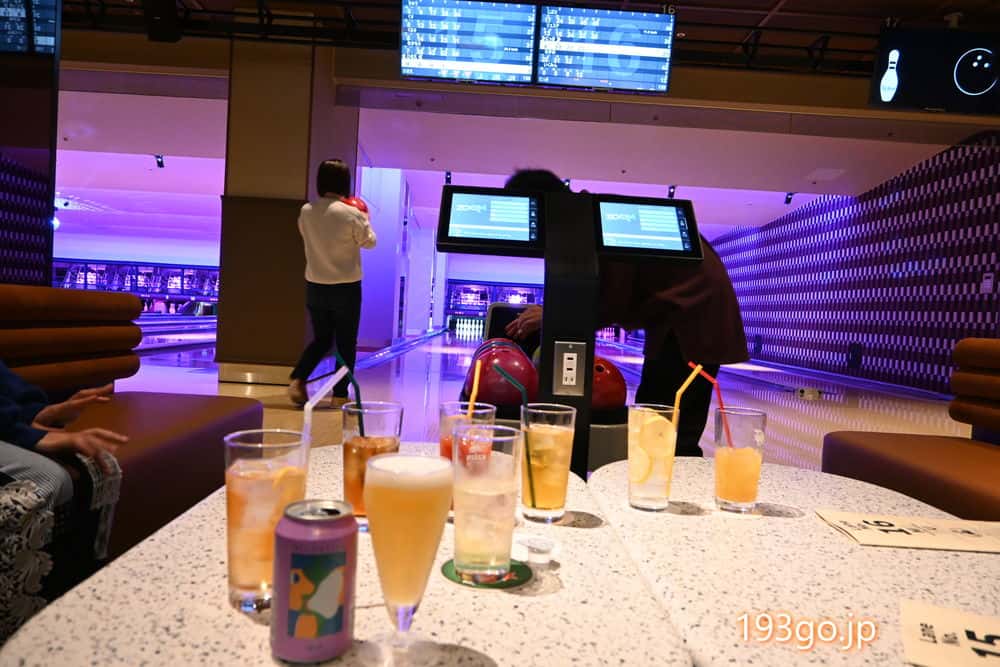 ⾷べながら、飲みながらボウリングパーティーができるのだ。