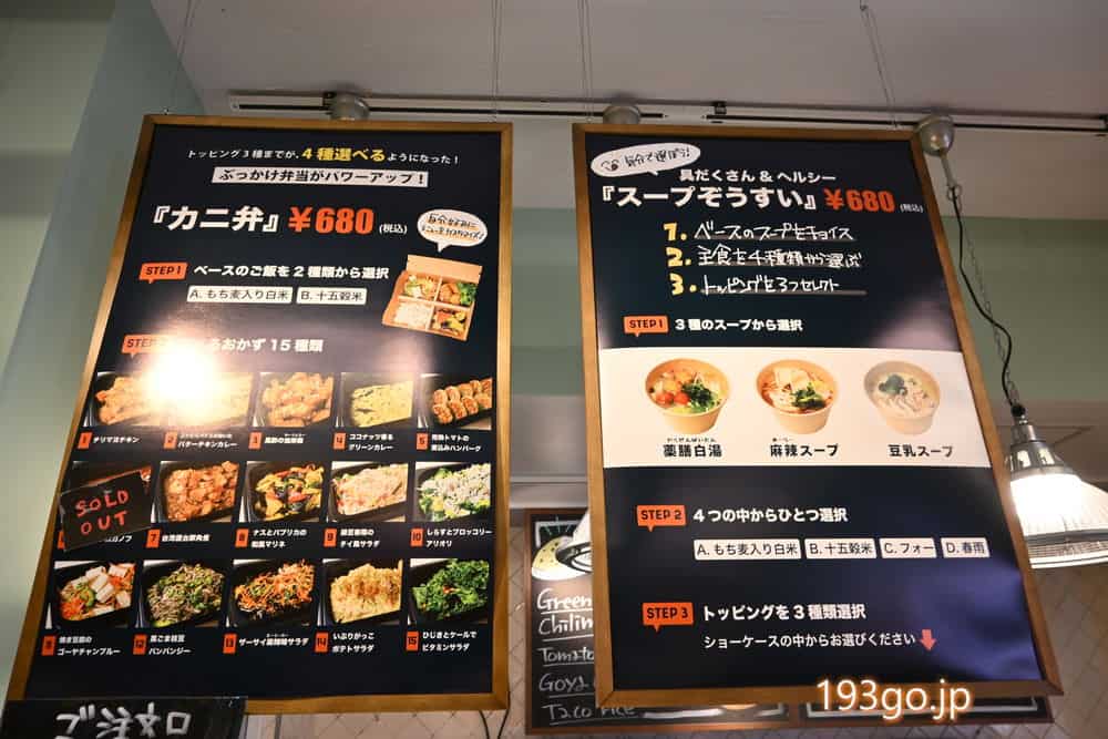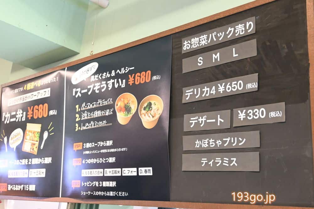 この中からおかず4種選べるカニ弁は680円。
