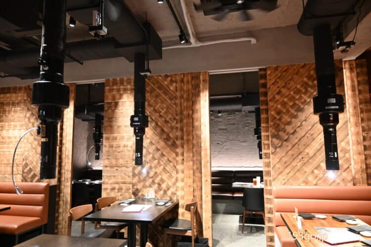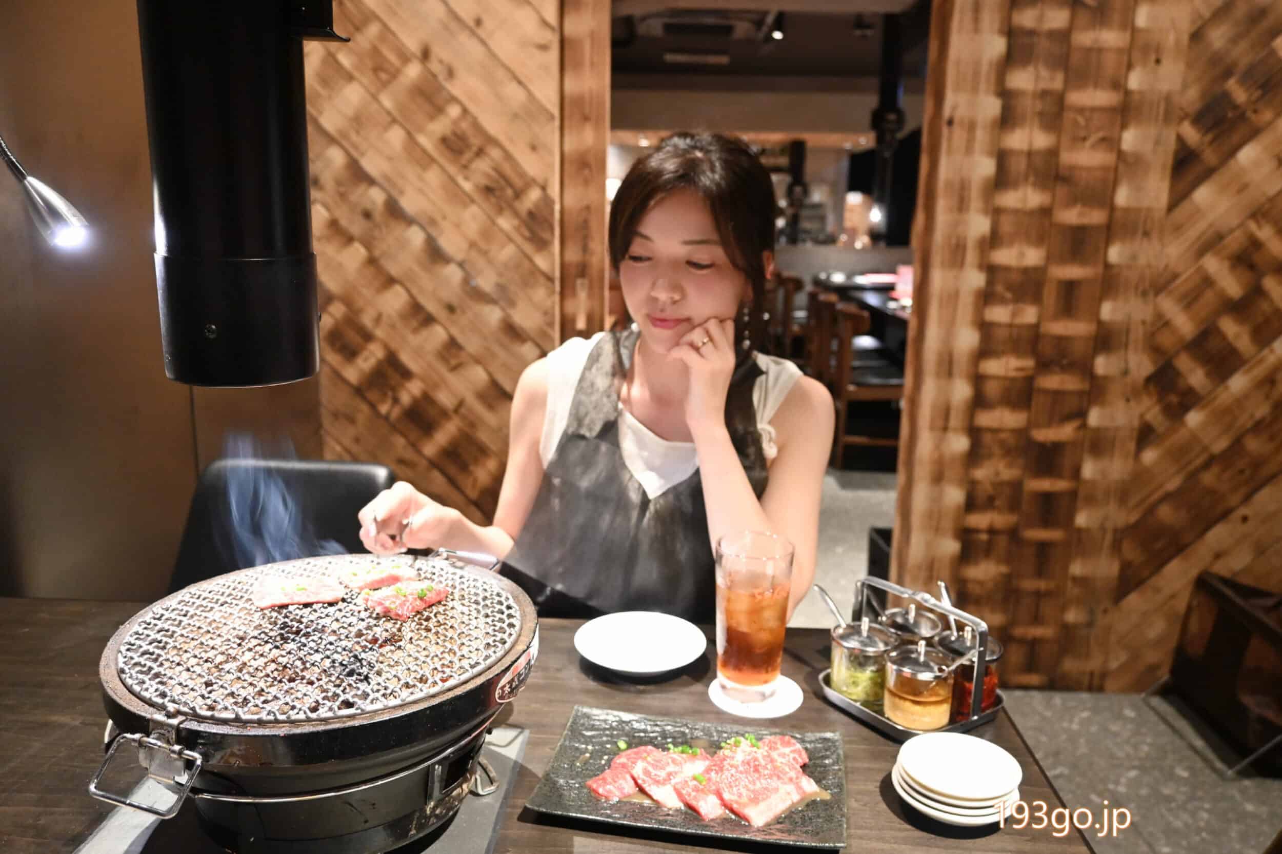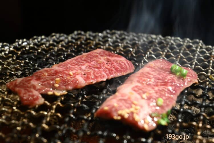 照明もキレイで、網の上に置かれたお肉は輝かしく、ジュージューと、食欲をそそる。