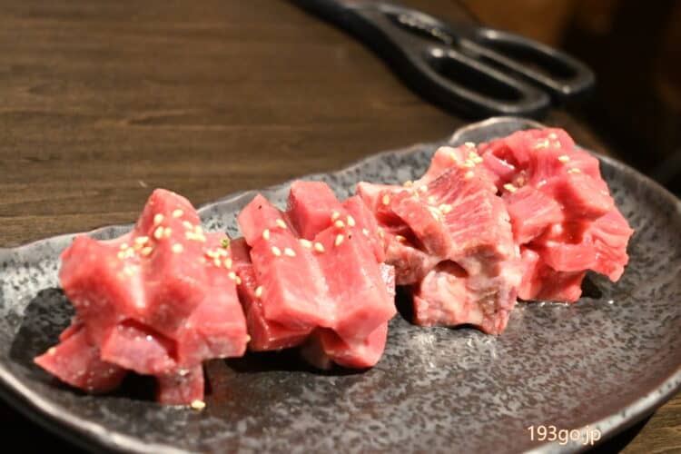 タン下は筋がありサシが入っていて、食感の違いが楽しめた。
