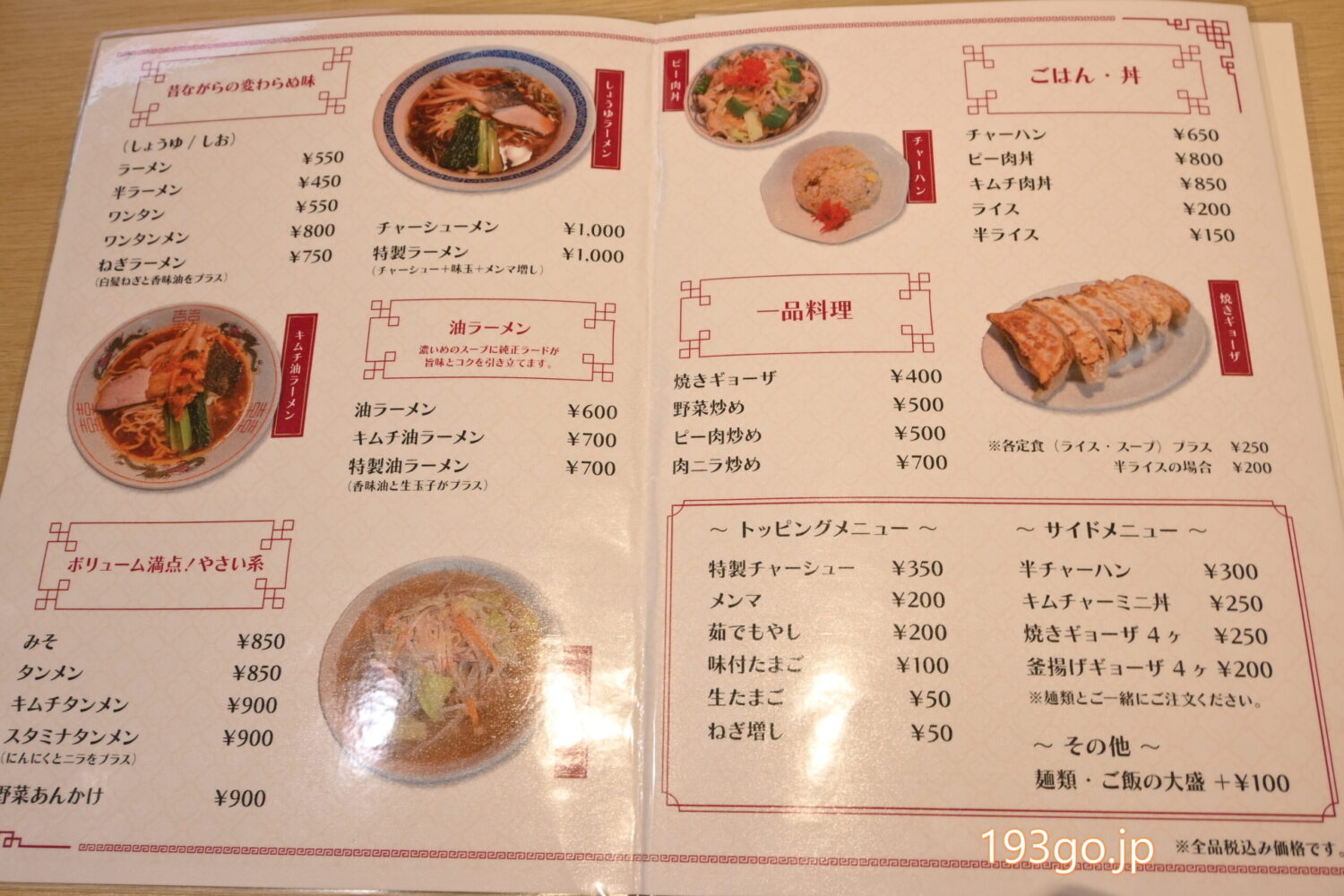しょうゆラーメン:550円、半ラーメン:450円~あり、リーズナブル。