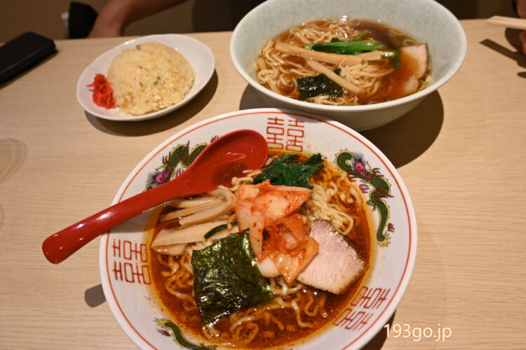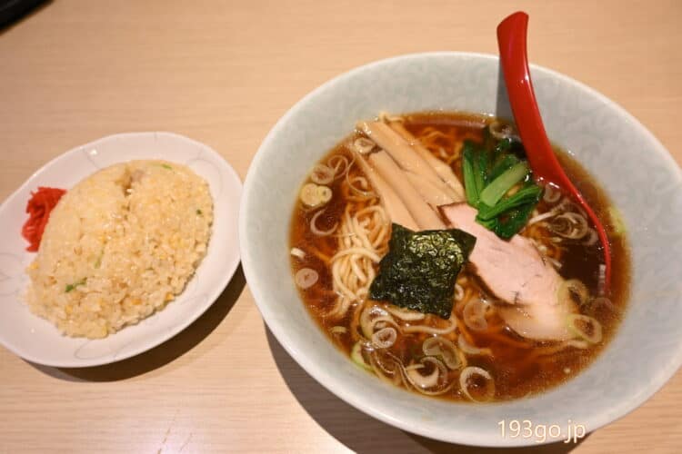 平日限定ランチセット(11:30~15:00)のラーメン+半チャーハン:750円と、