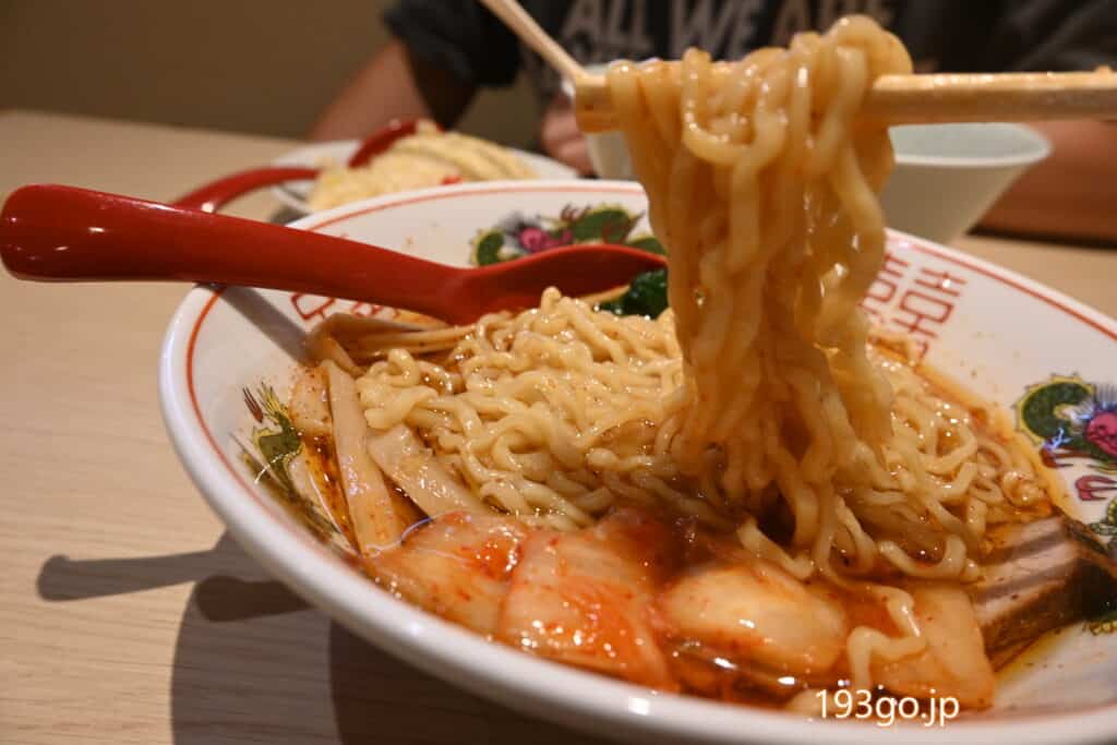 キムチ油そばも、辛さや油は抑え目で、意外にもジャンクじゃない。ツルツルの麺の食感がスープにマッチ。
