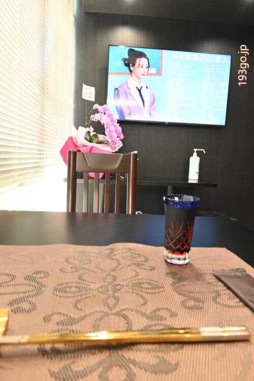 中国の時計がかけられ、中国語の歌謡曲が流れる。