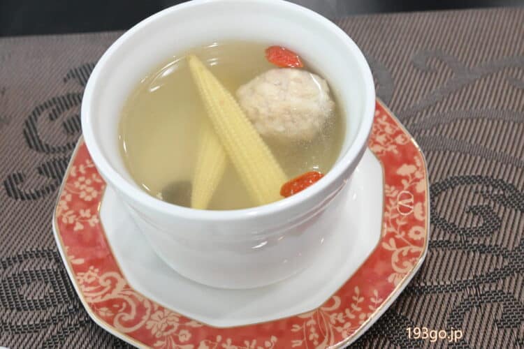 肉団子入り、ヤングコーンの香りと、クコの実も。
