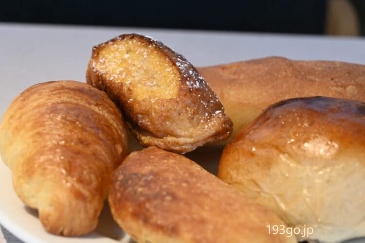 特に、ガーリックロールやチーズチャバタ、プチバゲットなどのバリっとしたハード系のパンと、温かいクロワッサン、フレンチトーストも美味しい。