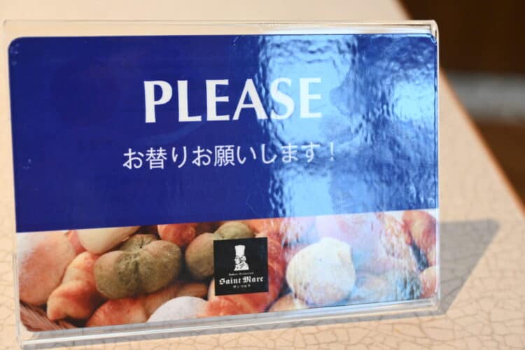 「お替りお願いします」の札を立てておくと焼き上がる度に色んなパンをサーブしてもらえて楽しい!