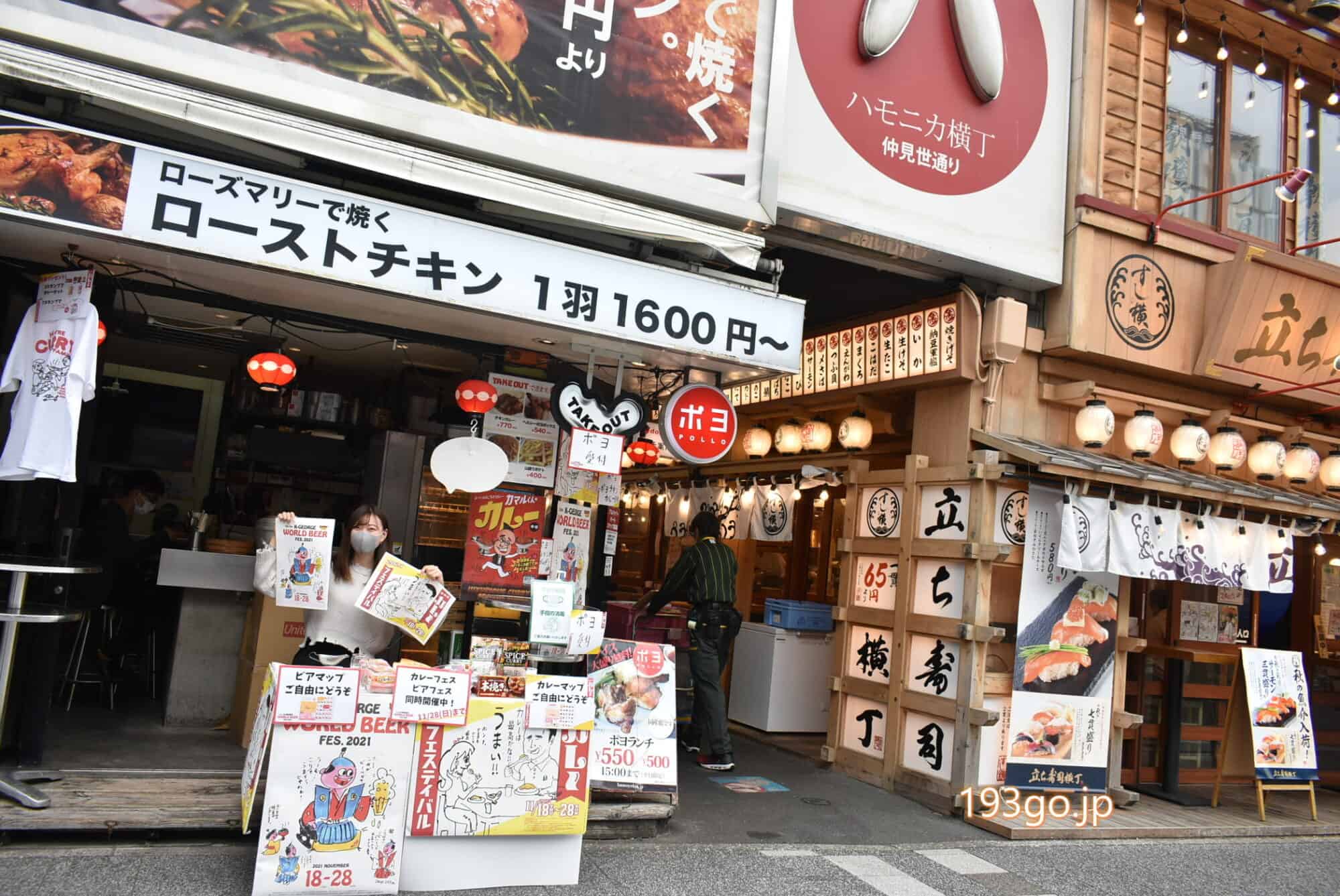 参加店の半分はハモニカ横丁内のお店で、その内のほとんどが平日のお昼はお休み、夕方頃オープン又はカレーのメニューの提供を開始。
