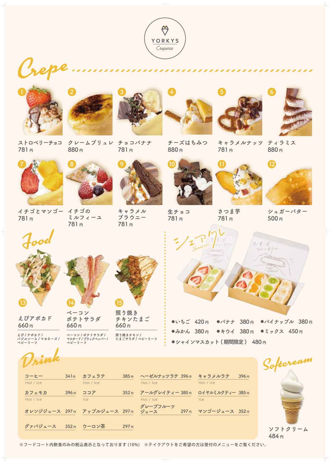 「YORKYS Creperie(ヨーキーズクレープリー)」メニュー と値段