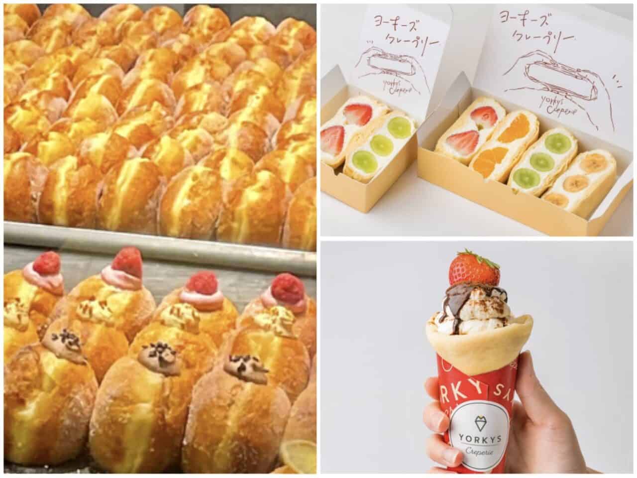「YORKYS Creperie / PIECE OF BAKE 吉祥寺店」では、季節のフルーツを贅沢に使用したスペシャリティクレープ「ヨーキーズクレープリー」と、たっぷりクリームが入ったふわふわじゅわ食感の生ドーナツ「ピースオブベイク」の2つのスイーツが楽しめる。