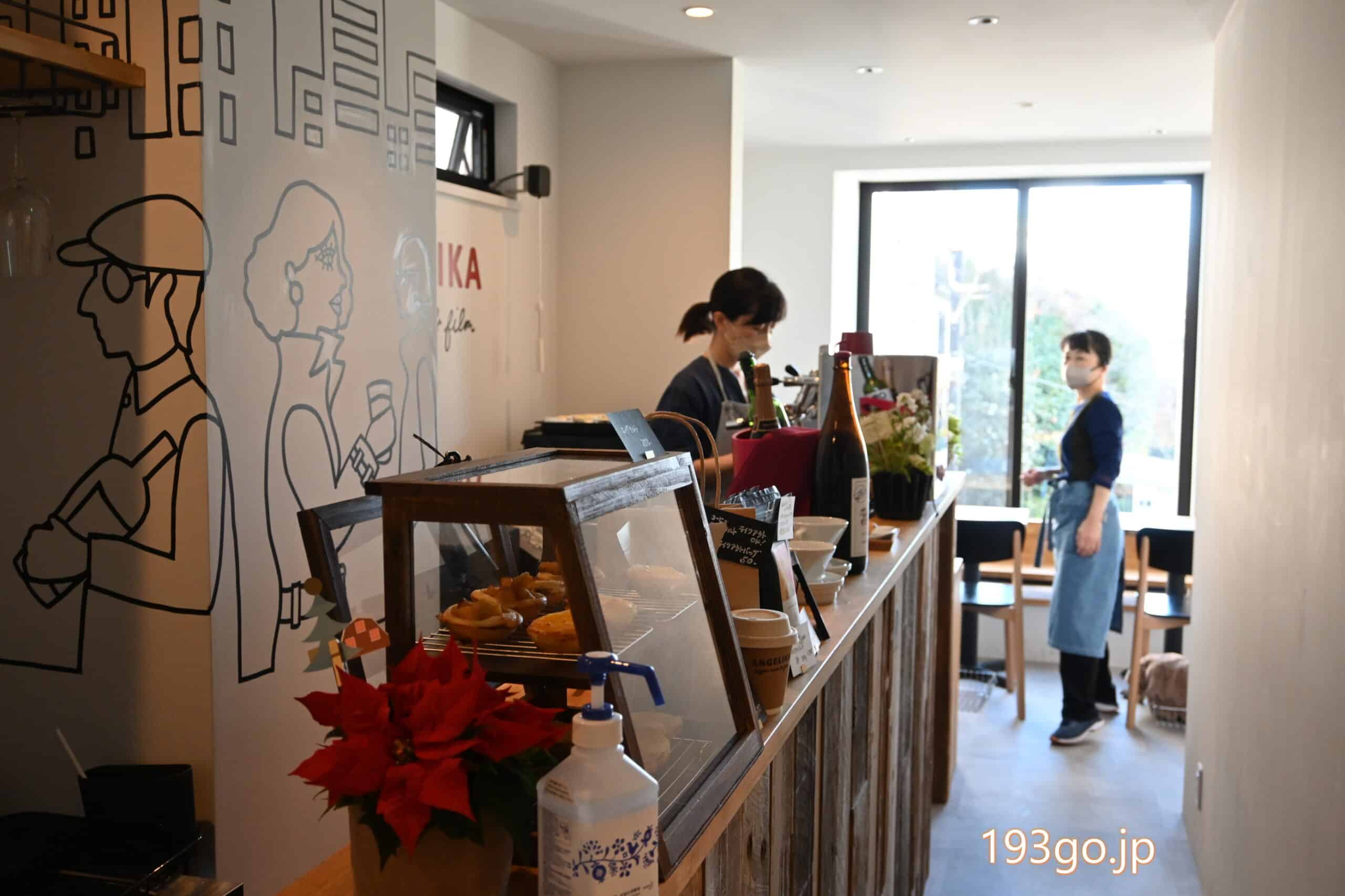 奥行きがあるコンパクトなお店。窓辺の席からは町並みも。