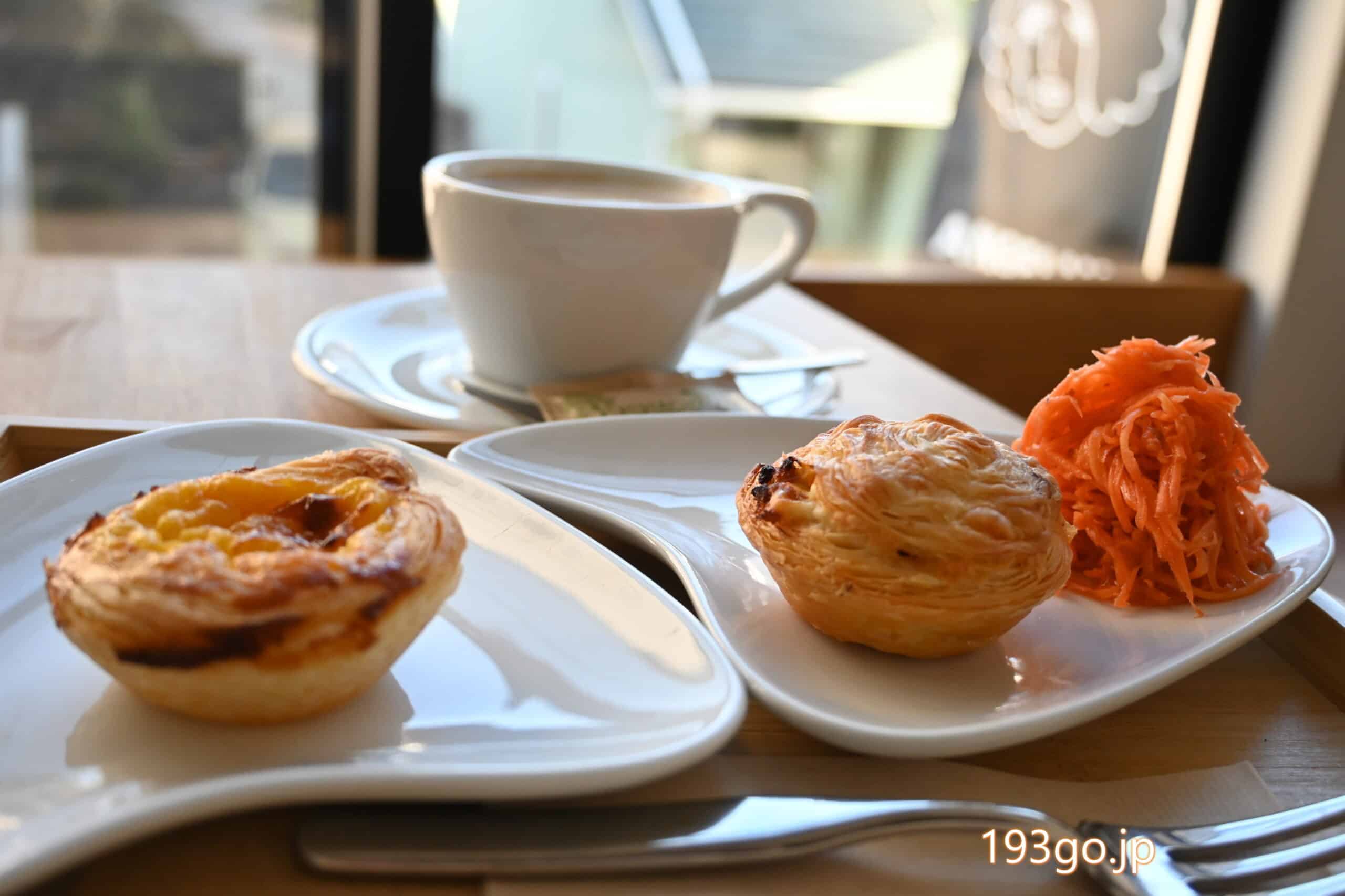通りに出ている看板を見ると、エッグタルト、バスクチーズケーキ、沖縄焙煎コーヒー、ワインなどが楽しめる様。階段を上がり2階の店内へ。