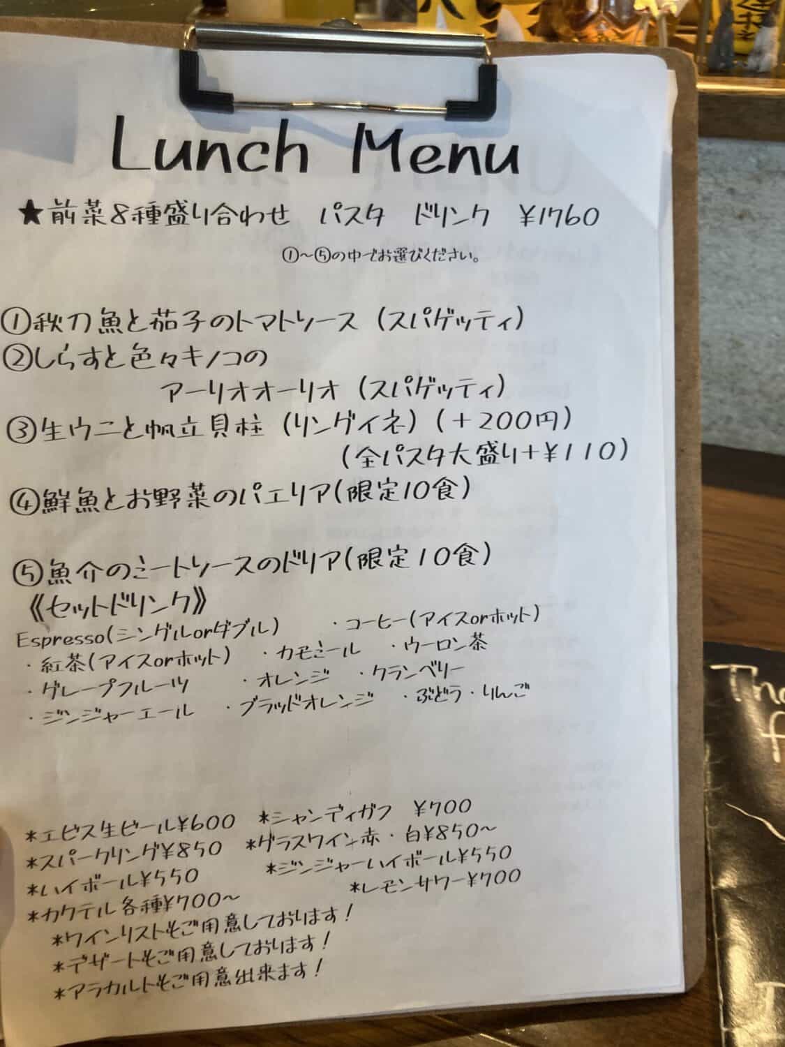 パスタは、秋刀魚やしらす、生うにとホタテなど魚介のメニューが嬉しい。
