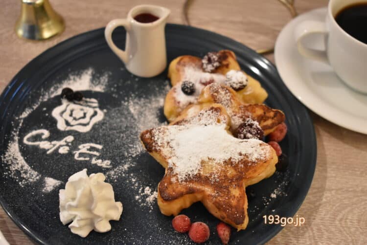 ブルーのお皿にミニサイズの星型フレンチトーストが3枚