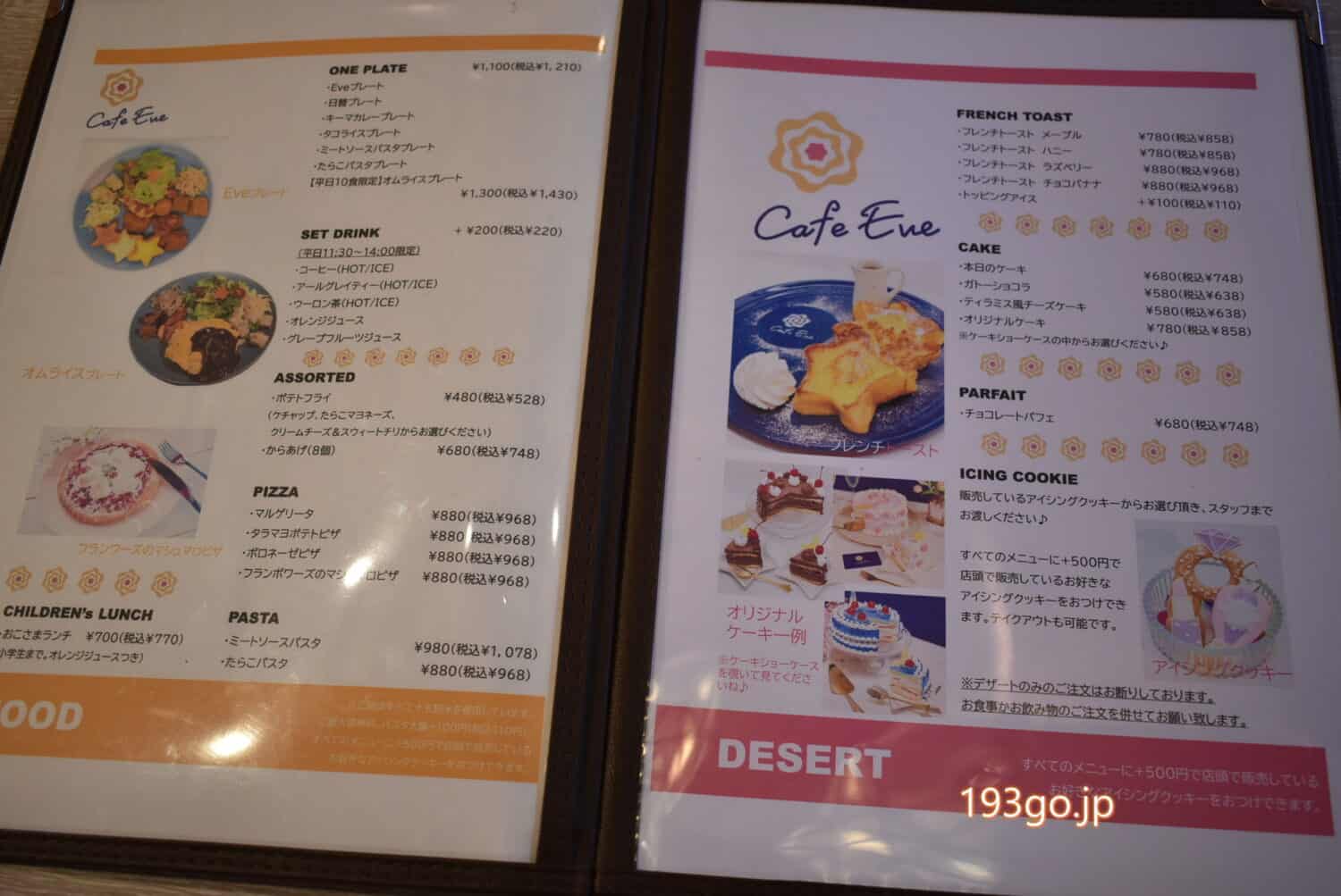 食事はキーマカレーやタコライス、日替わりプレートにeveプレート、