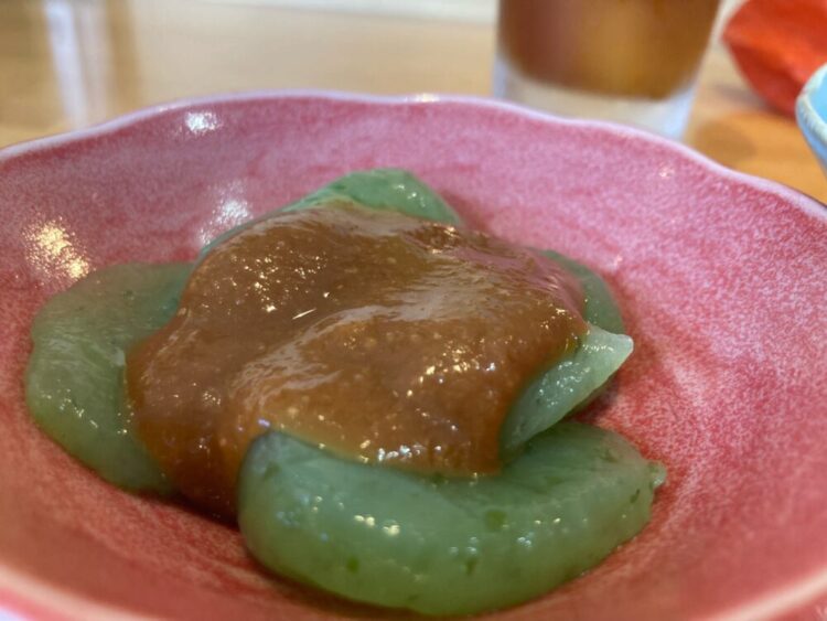 この日の小鉢は味噌こんにゃく。喉越しが良く、夏に食べたいおつまみ。