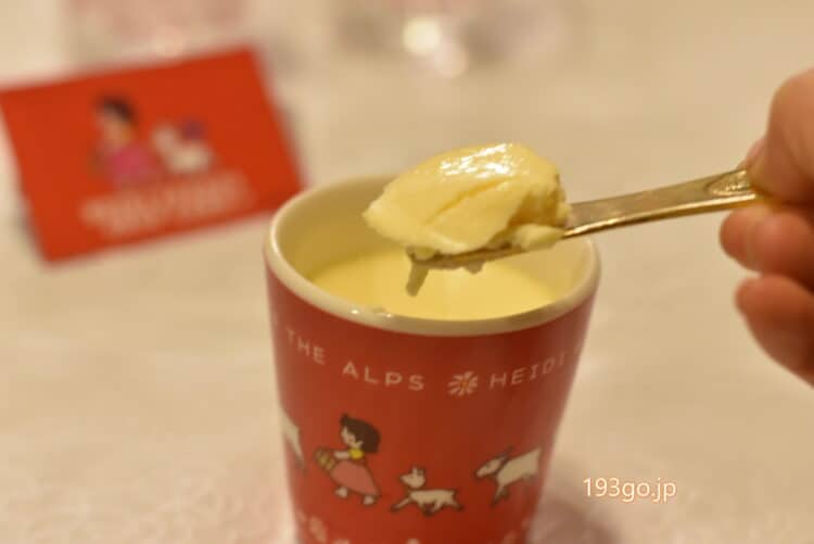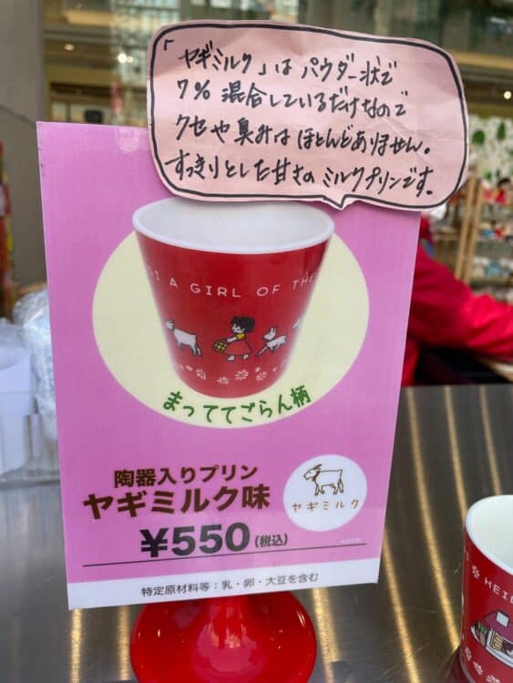 「ヤギミルクはパウダー状7%混合しているだけなのでクセや臭みはほとんどない、すっきりとした甘さのミルクプリン」とコメントが。