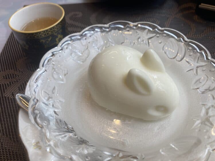 辛いもの食べた後は、うさぎ型の杏仁豆腐。