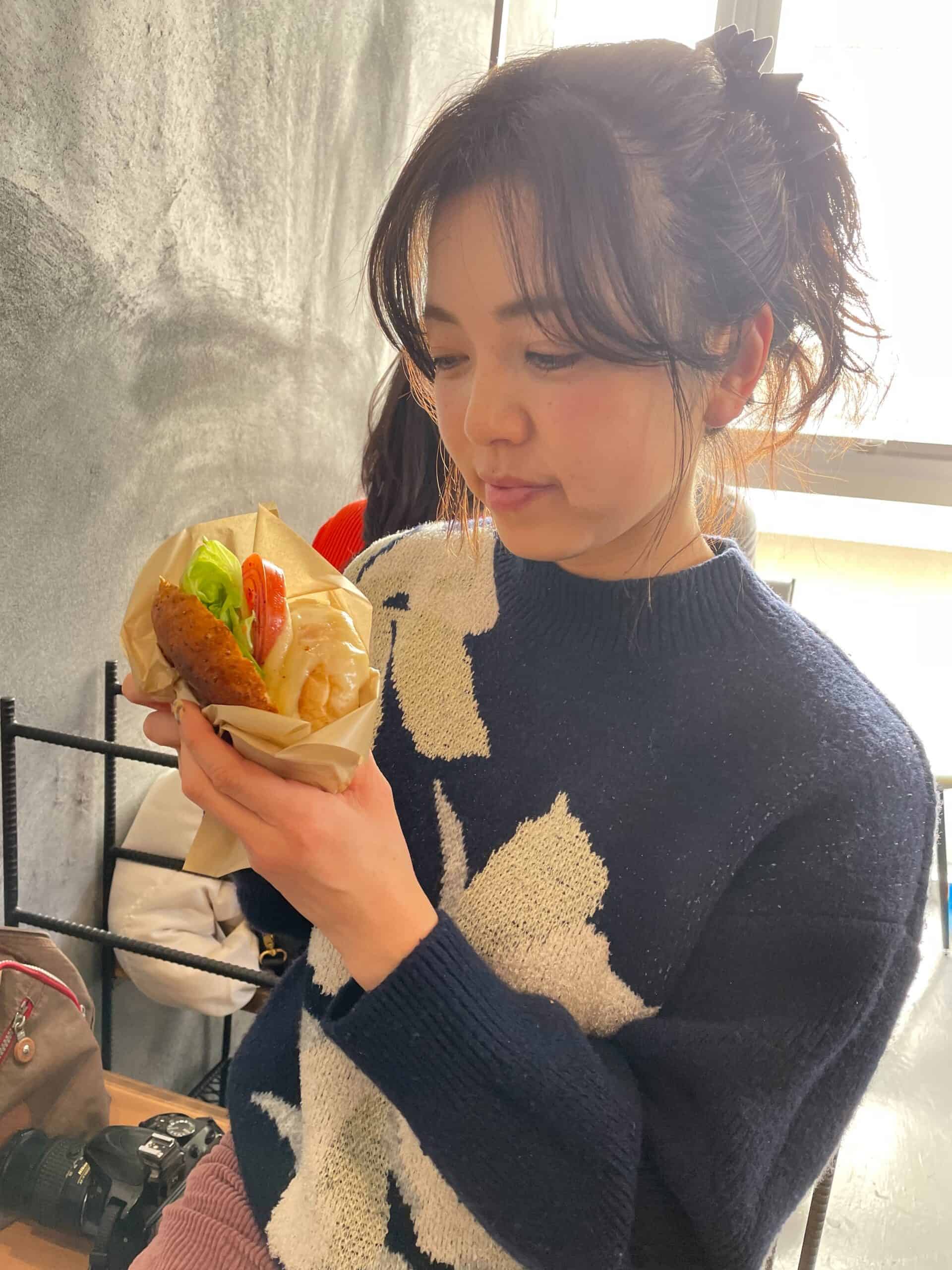 ハンバーガーの食べ方も予習