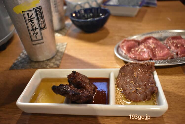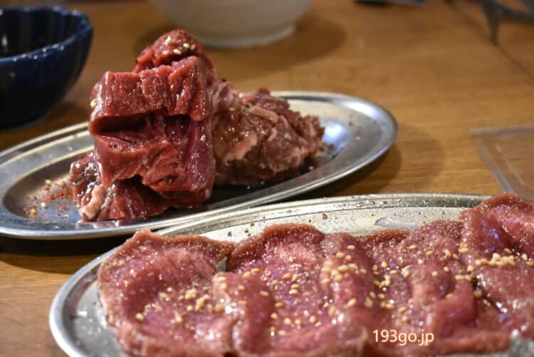 好物の牛タン、牛カルビもツヤツヤで新鮮。