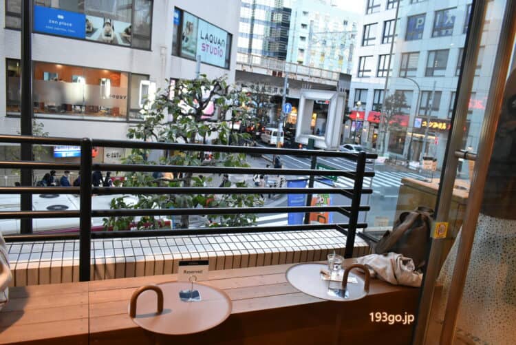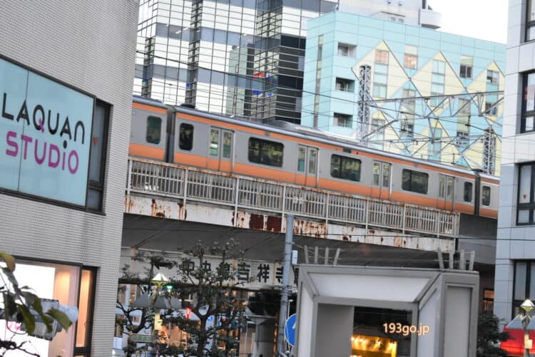 テラスからは駅前の街並みの眺め。今日も中央線が走る!