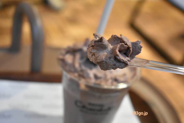 上にふわふわのチョコレートクリームを乗せてくれる。