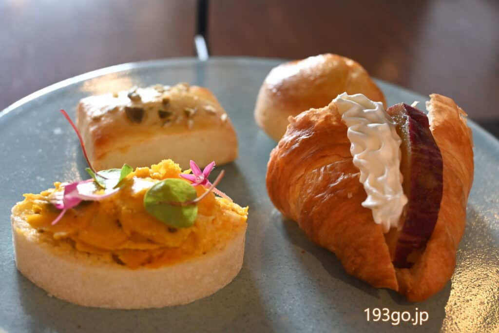 焼き芋をサンドしたクロワッサンに、パンプキンプリン、スイートポテトと、秋を感じるスイーツ。