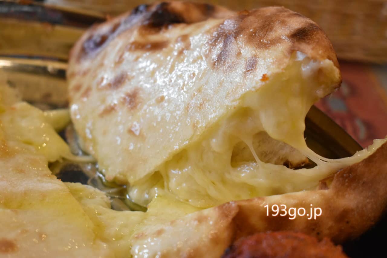店内で焼き上げる焼きたてのチーズナン、ワンホールは、やはりボリューミー!