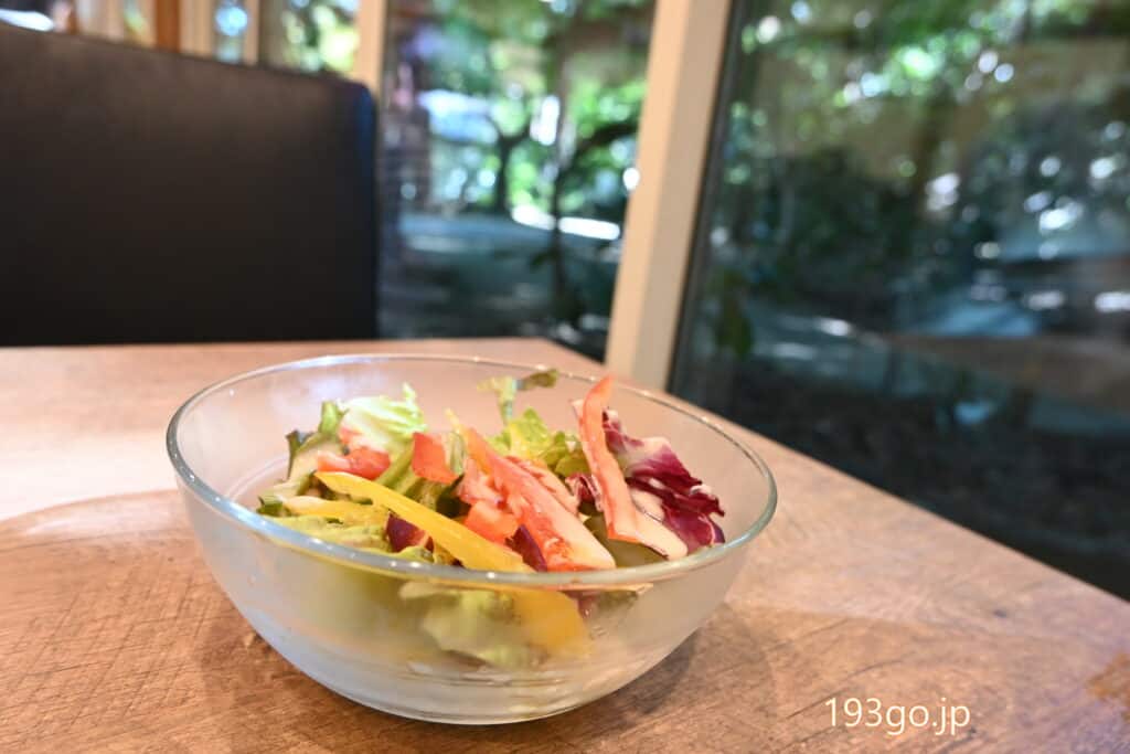 先にサラダが。アンチョビレモンのドレッシングで酸味がありサッパリ。