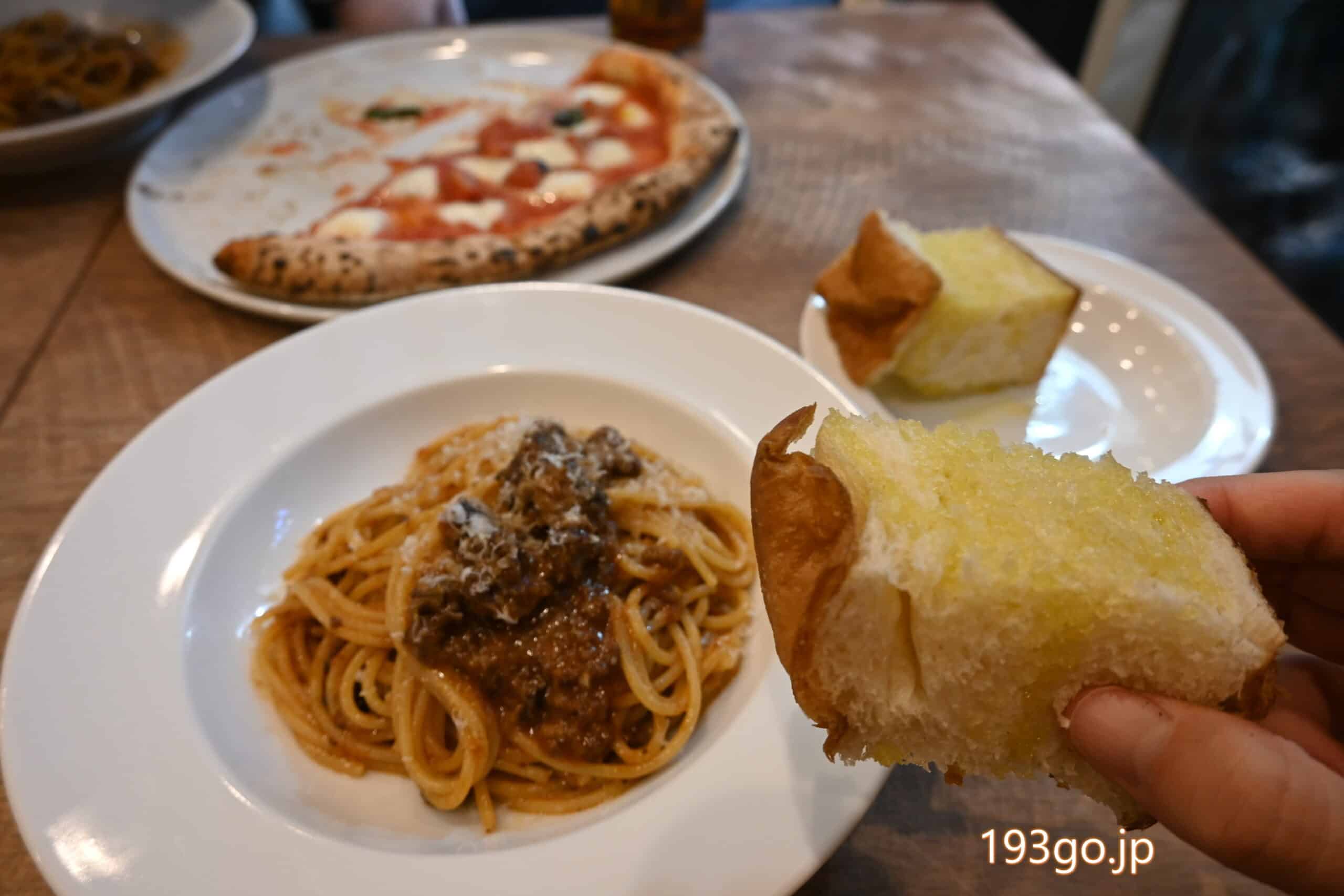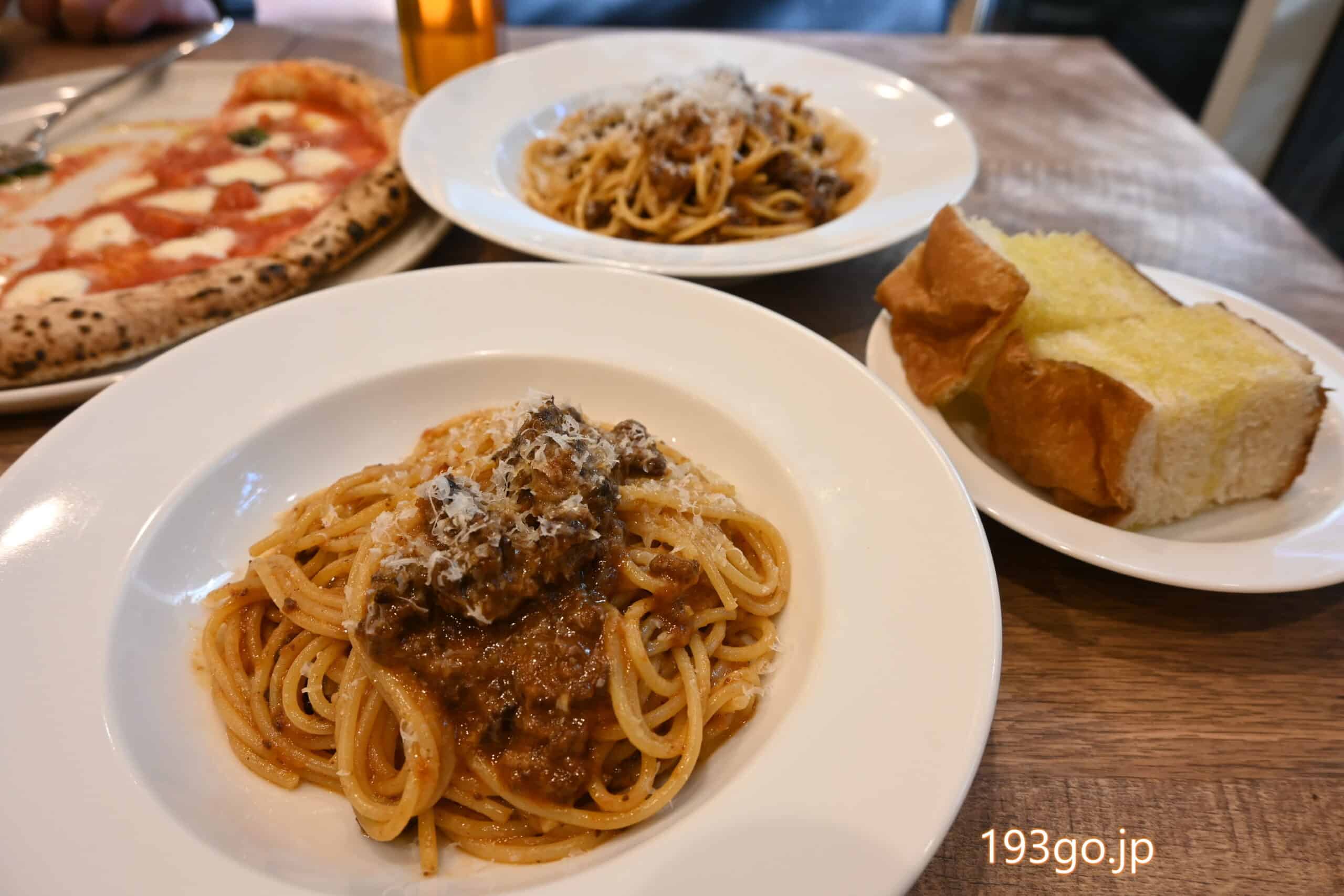 国産牛のボロネーゼの大盛り!フォカッチャも絶品