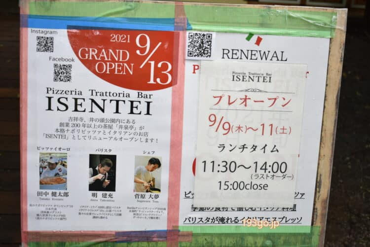 吉祥寺の井の頭公園の中にある江戸時代創業の茶屋「井泉亭」がイタリアン「ISENTEI」としてリニューアルオープン。