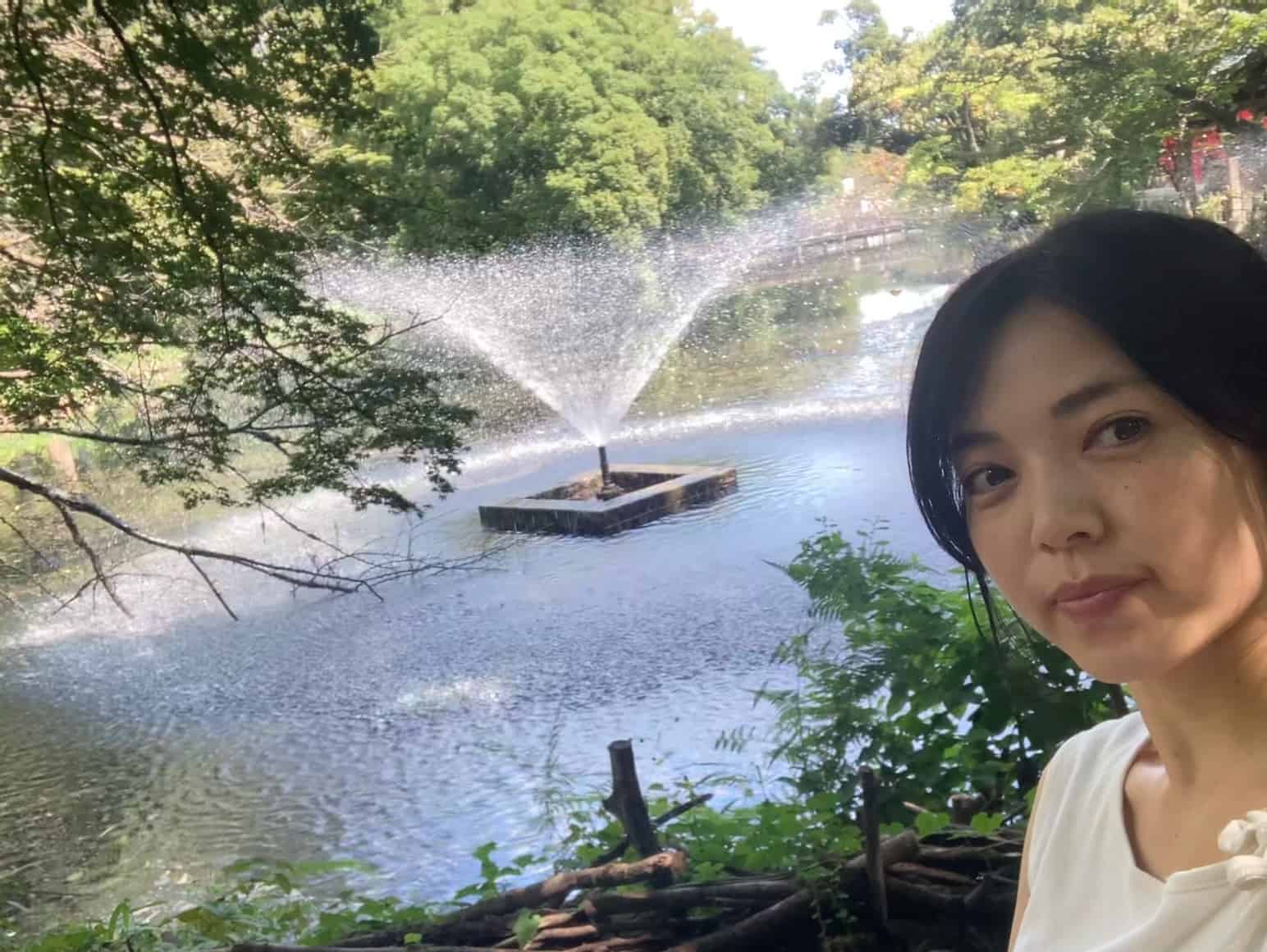 場所は井の頭弁天財の前で噴水が涼し気なスポット。