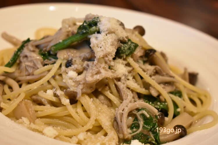 パスタは、静岡県産マッシュルームラグーと4種のきのこスパゲティ