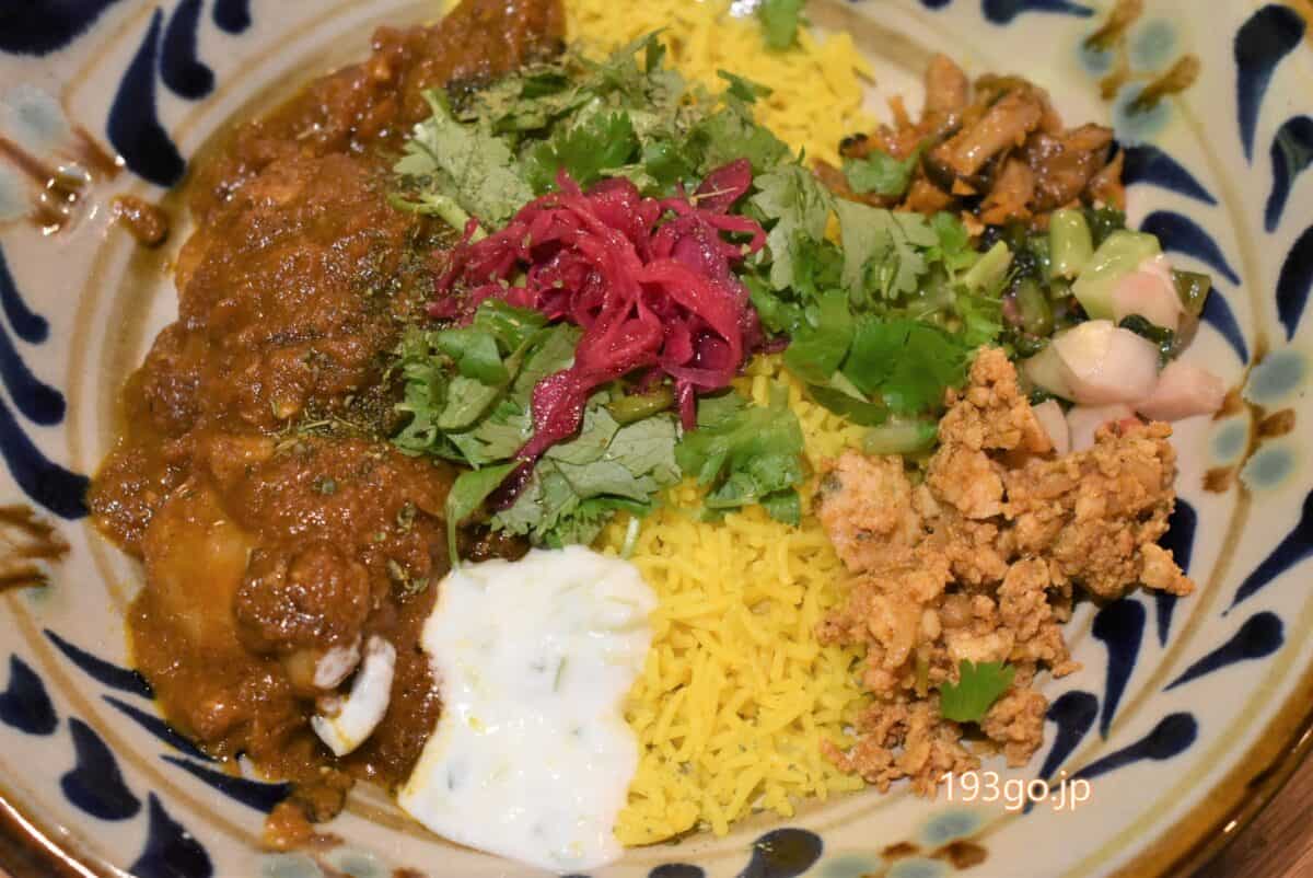 チキンは北インド式で自家製ガラムマサラとや柔らかく煮込んだチキンカレー。