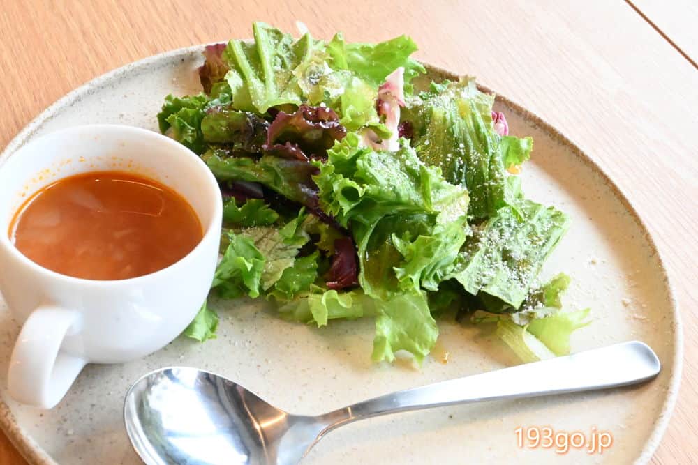 メインのパスタ、セットのサラダは月替わりの様。選ぶパスタによって料金が異なる。