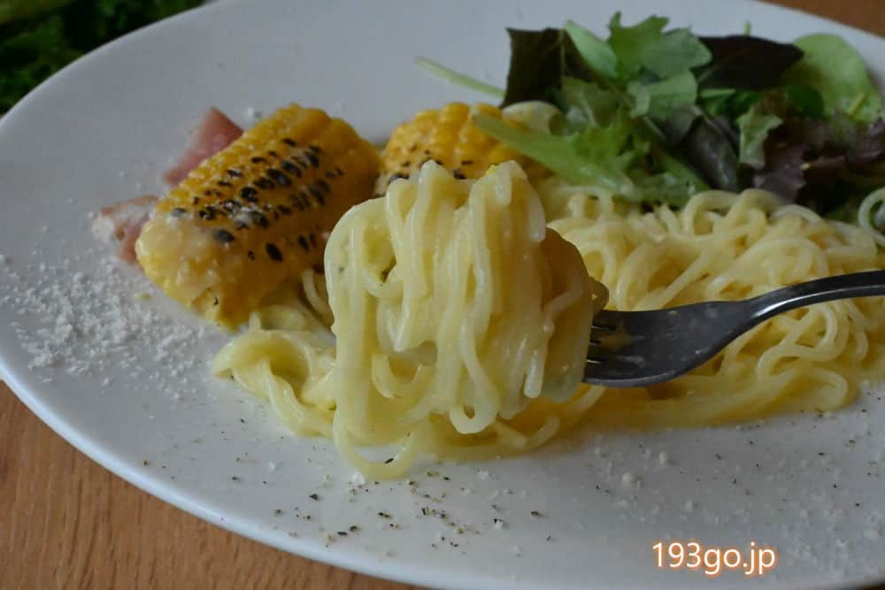 鮮やかなコーンがたっぷり!スープ風パスタでひんやり