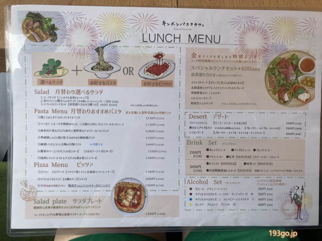 「金星(キンボシ)パスタカフェ」ランチメニュー 選べる月替わりパスタ サラダ付き