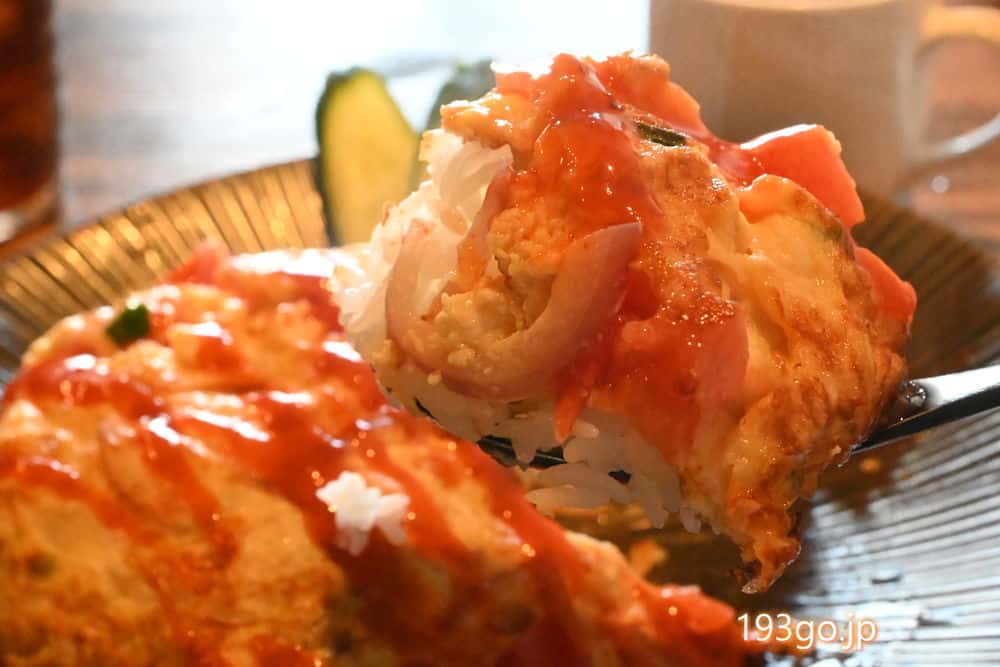 甘辛チリソースのふわふわオムライス 香り高ジャスミン米と共に